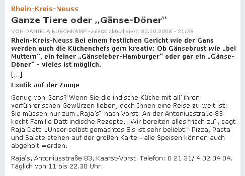 Top 10 Rheinland -"Raja’s" in Kaarst